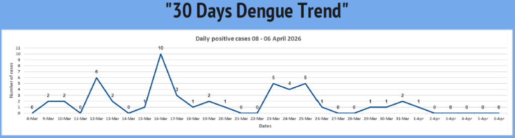 Monday 6th April 2026 marks the end of the second 30 days of Operation Namu26. As depicted in the graph below, no new cases were recorded from Thursday 2nd April to Monday 6th April 2026. As of Tuesday 7th April 2026, only 5 active cases remain for Rarotonga.